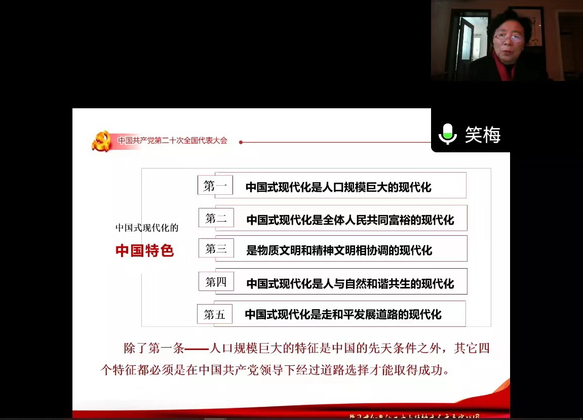 此次培训将学习贯彻党的二十大精神作为公共课重点。中共重庆市委党校原副校长、市委党史学习教育宣讲团成员罗晓梅教授以《认真学习贯彻党的二十大精神,在新征程上踔厉奋发、勇毅前行》为题为全体学员作了党的二十大精神专题辅导,从“深刻理解二十大主题和主要成果”“重点把握二十大报告的主要内容”“学习贯彻二十大精神的基本要求”3个方面进行了全面解读,既见微知著,又深入浅出,给大家带来了一场政治素养和理论水平提升的思想盛宴。.
